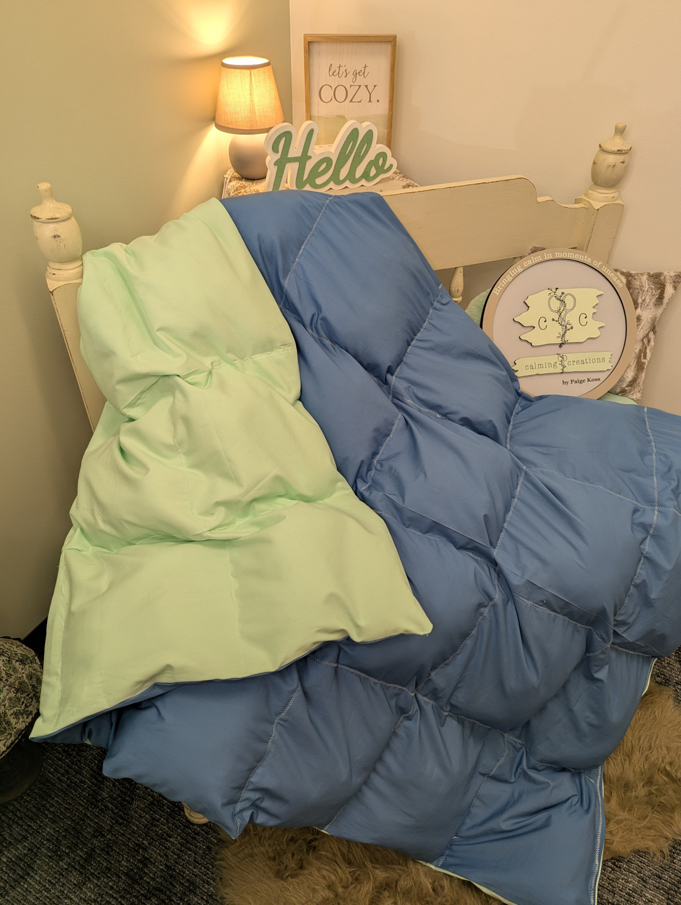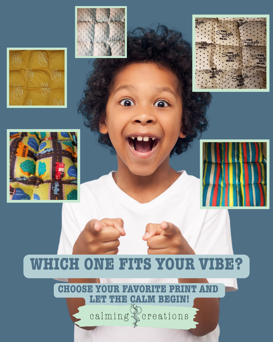 Our weighted lap pads are designed to bring a sense of calm and focus during car rides, schoolwork, movie nights, or any time your child needs extra comfort.